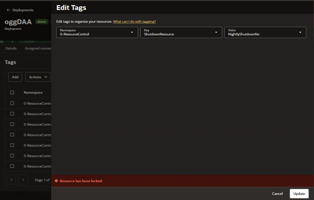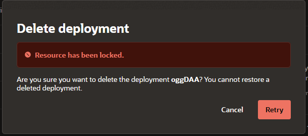 oci goldengate deployment add-lock --deployment-id ocid1.goldengatedeployment…  --type FULL/DELETE