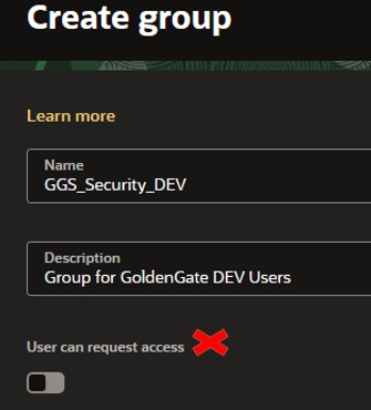 • OGG_OCI_ADMIN – The group who can deploy and manage the OCI GoldenGate Instance and resources like connections and assignments, it doesn’t need to have access to source/target or deployment itself.